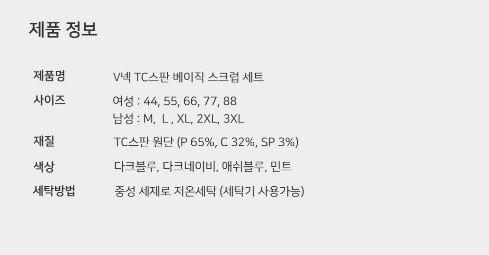 V넥 TC스판 베이직 스크럽 세트 (4color)