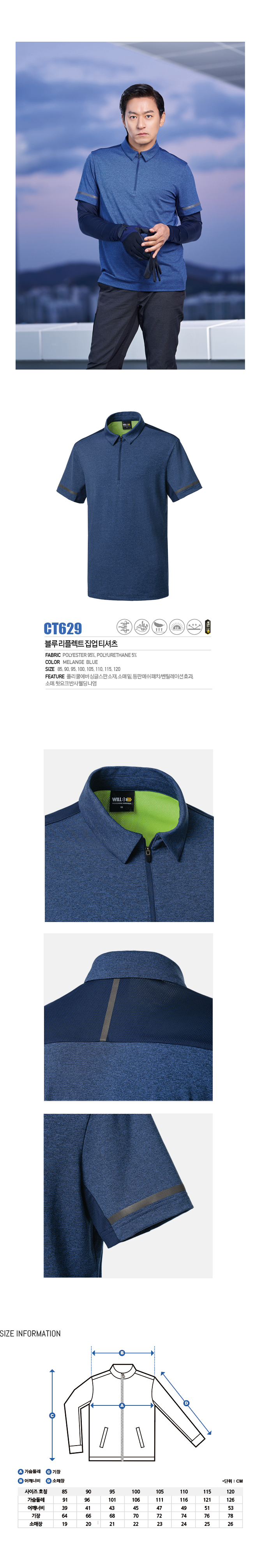 CT629 블루 리플렉트 집업 티셔츠