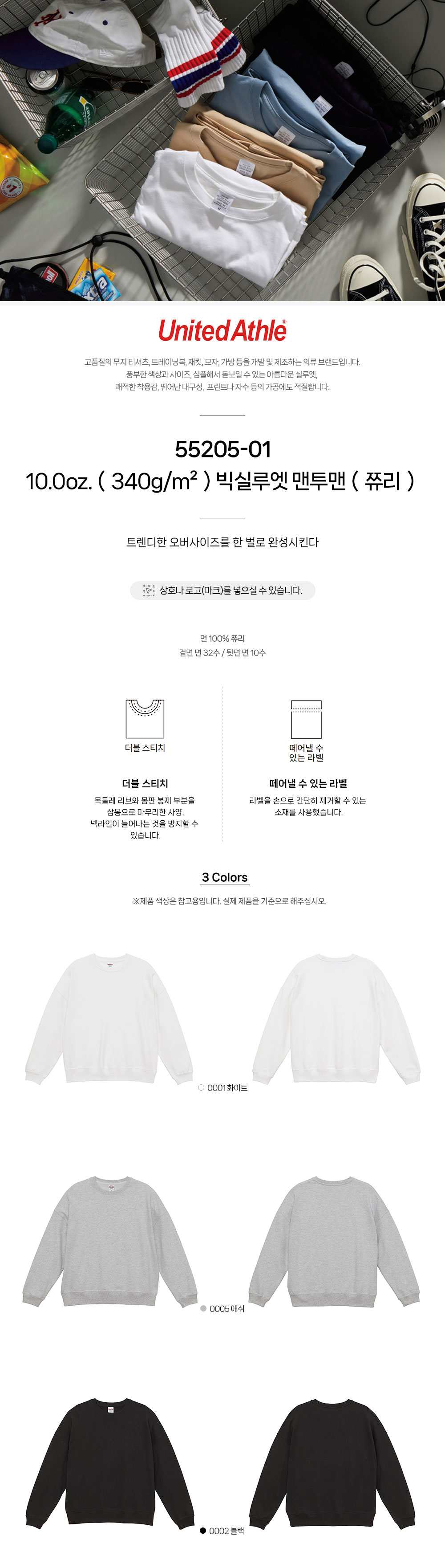 빅실루엣 맨투맨(쮸리)55205-01 10.0oz.(340g/m²) 유나이티드 애슬 United Athle