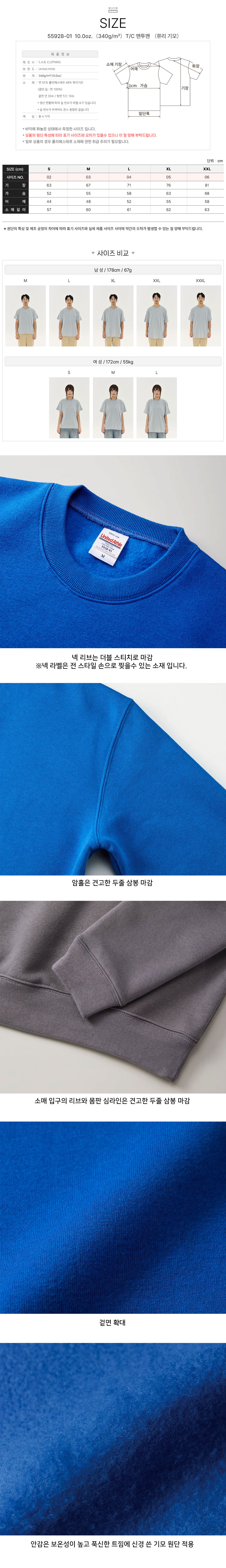 T/C 맨투맨 (쮸리 기모)55928-01 10.0oz.(340g/m²) 유나이티드 애슬 United Athle