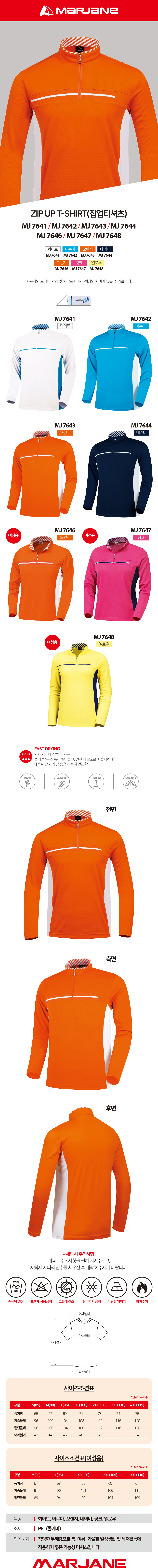 MARJANE_MJ-7641-7648 ZIP UP T-SHIRT(집업티셔츠) 차이나집업(남/여 긴팔)