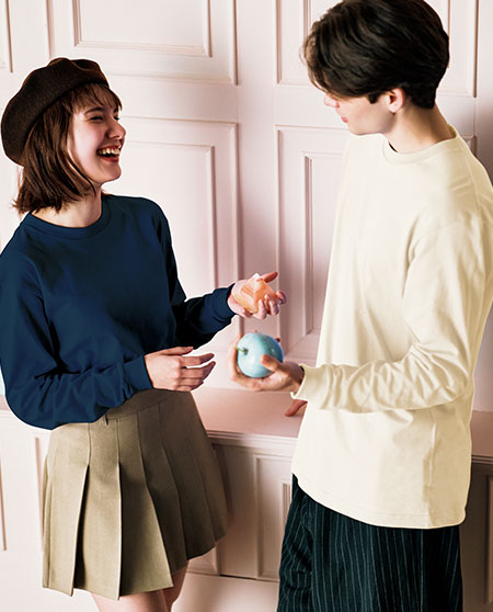 인기 상품인 베이직 라운드 티셔츠의 긴팔 사양