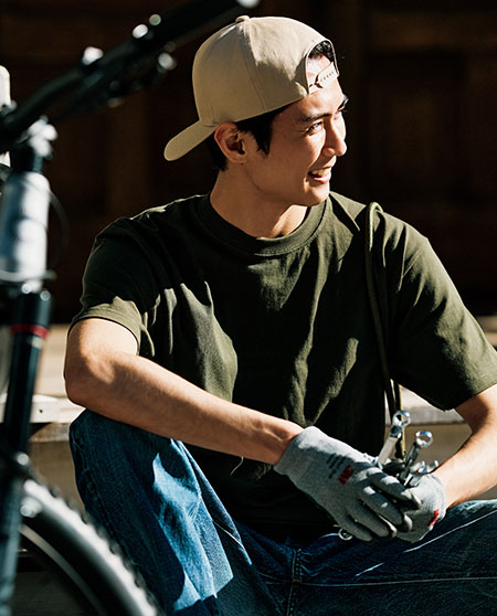 격한 사용에도 내구성이 뛰어난 목부분 봉제사양과,시보리(RIB지) 부착 사양의 최고급 14수 긴팔 티셔츠