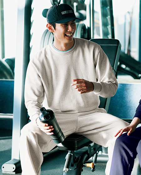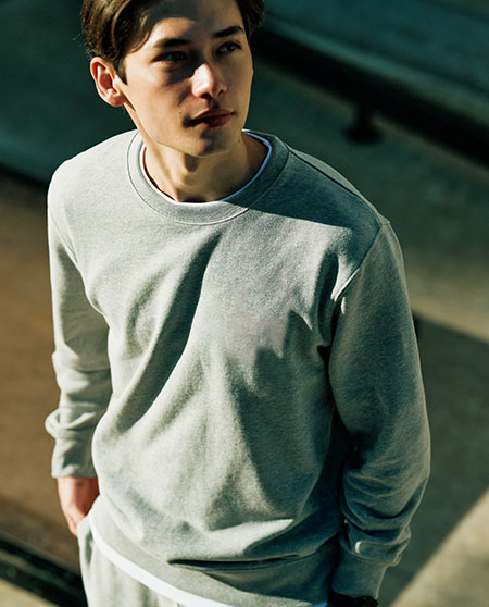 가볍고 활동성이 편한 기모 맨투맨으로 넉넉한 오버핏 사양