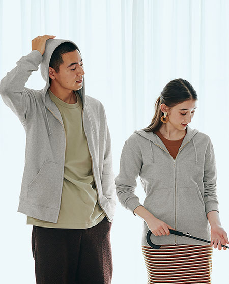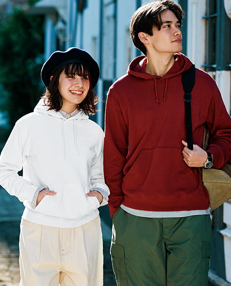 스탠다드한 실루엣의 어패럴에도 유용하게 활용되는 보온성 높은 헤비 후드티