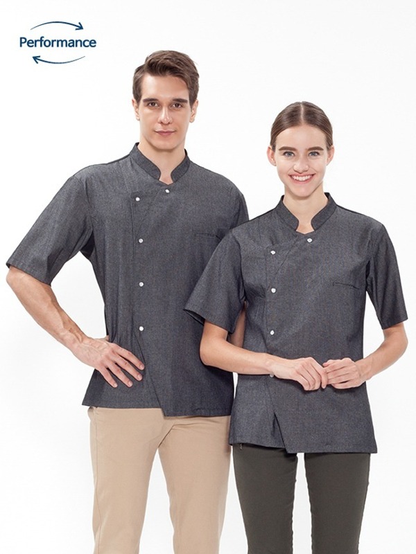 히든스냅으로 깔끔하며 하프 크로스넥으로 모던한 느낌의 TC32수 원단 조리복