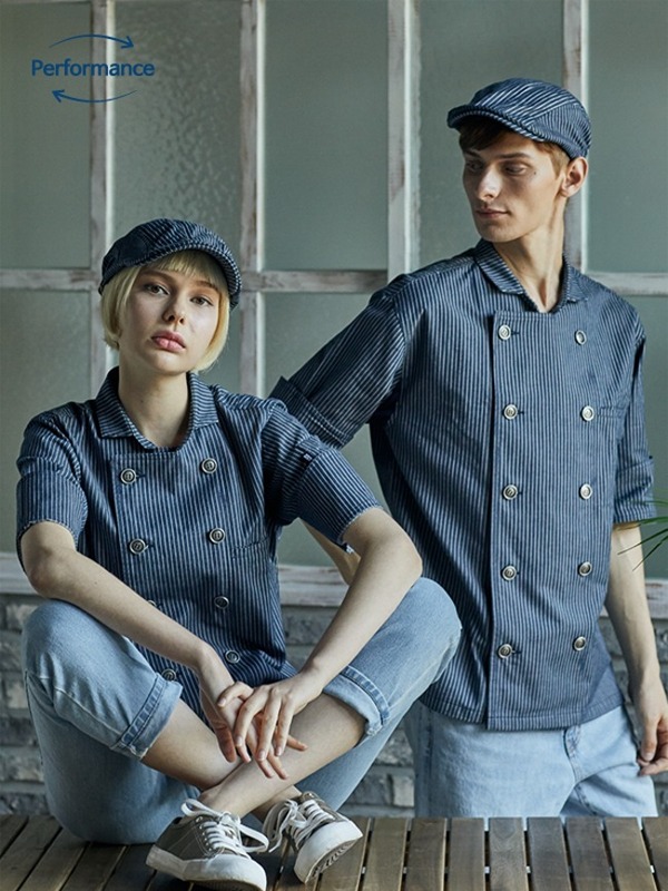 제복 스타일의 고급스러움이 느껴지는 세련된 디자인의 스트라이프 조리복