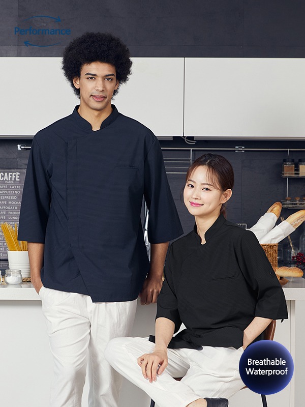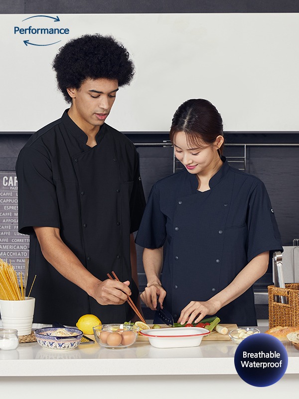 BE THE CHEF_O-210_더블스냅 숨쉬는 방수 조리복 (2color)