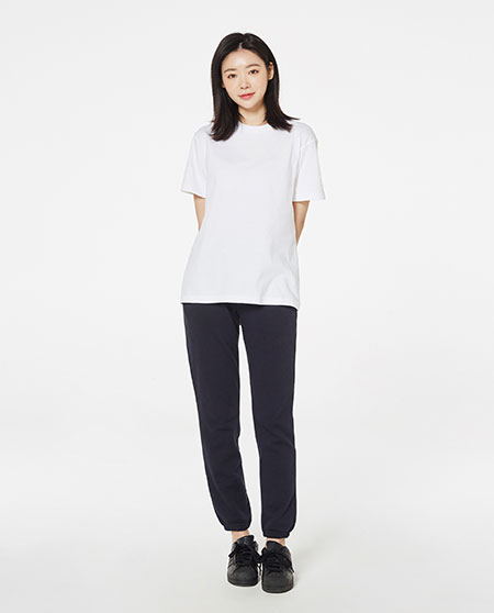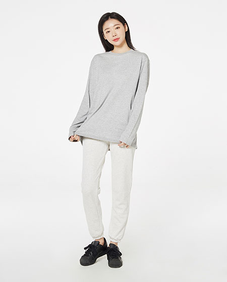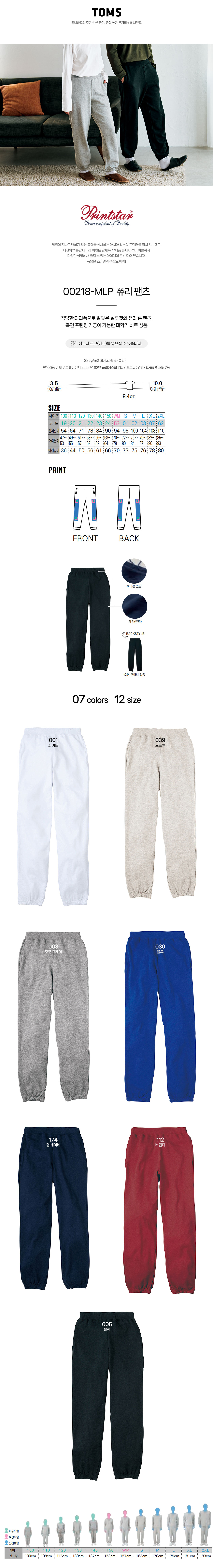 적당한 다리폭으로 알맞은 실루엣의 쮸리 롱 팬츠. 측면 프린팅 가공이 가능한 대학가 히트 상품