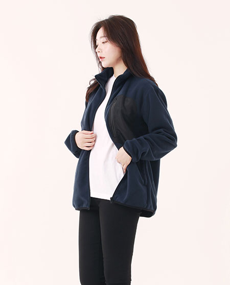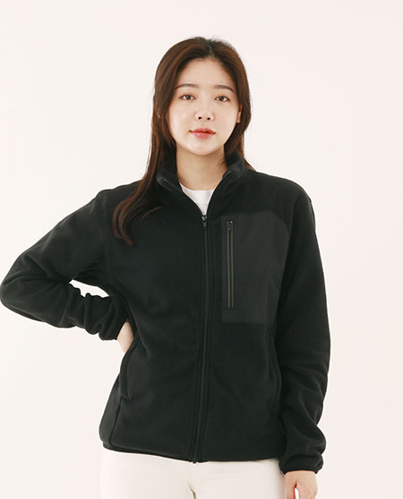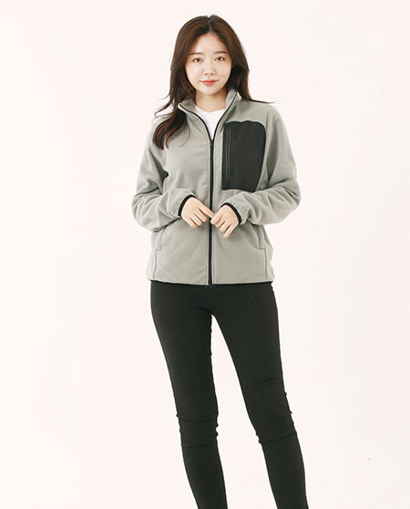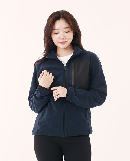 뛰어난 봉제와 따뜻한 소재로 왼가슴 주머니의 지퍼와 뒷목에 반사소재를 사용한보온성이 뛰어난 플리스 자켓
