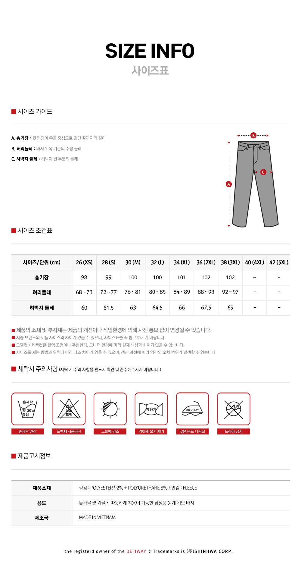 겉감 : 폴리에스터 92%+폴리우레탄8% / 안감 : 플리스 100%