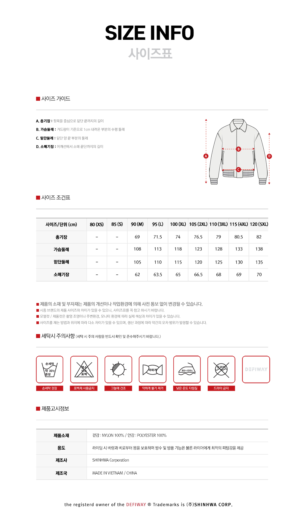 겉감 : 나일론 100% / 안감 : 폴리에스터 100%