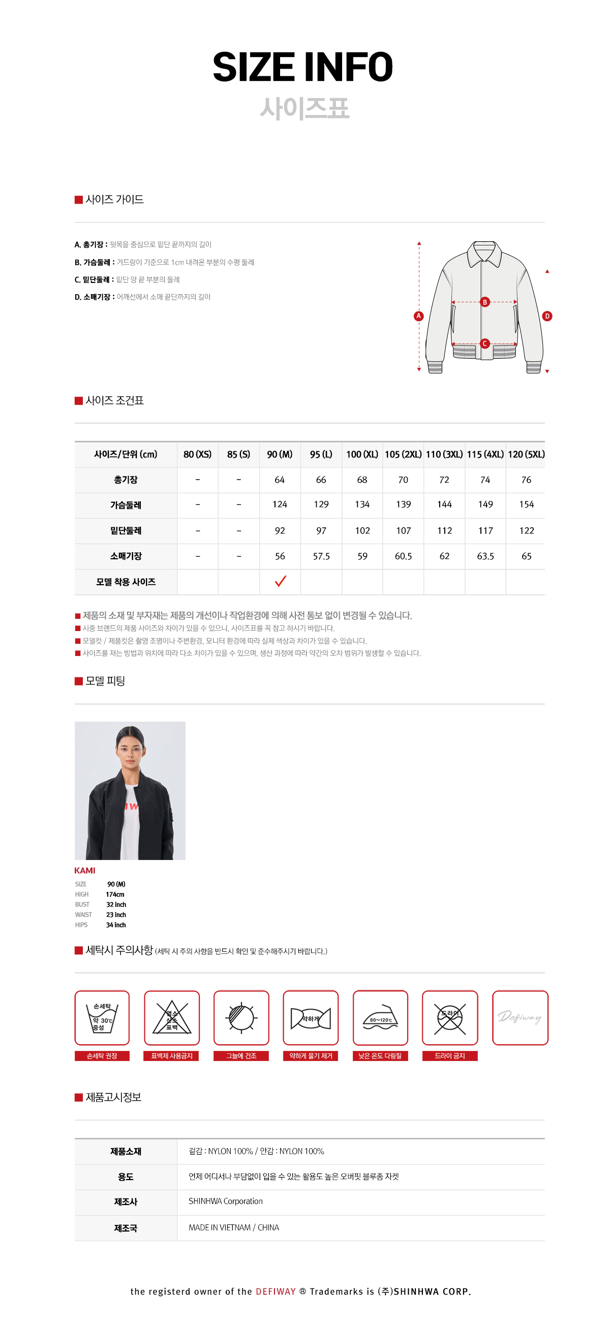 겉감 : 나일론 100% / 안감 : 나일론 100%