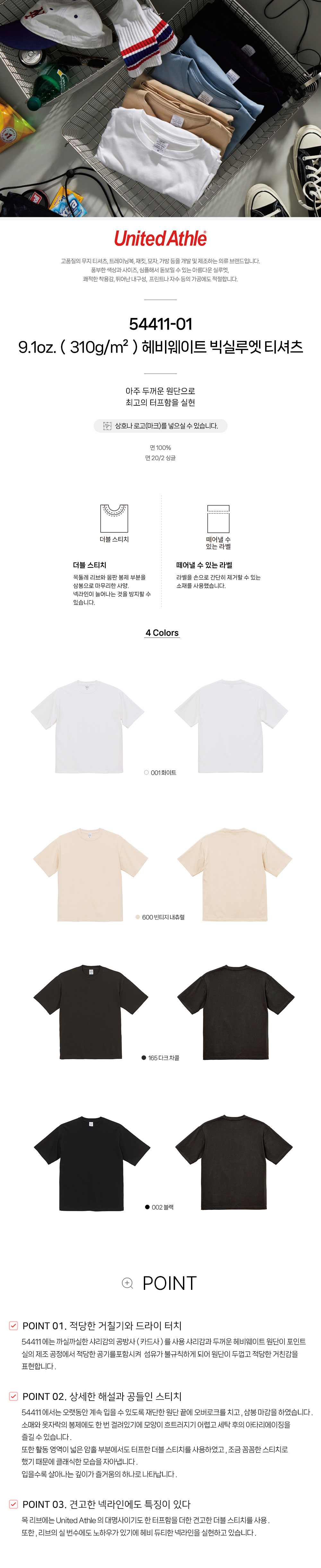 헤비웨이트 빅실루엣 티셔츠 54411-01 9.1oz(310g/㎡)유나이티드 애슬 United Athle
