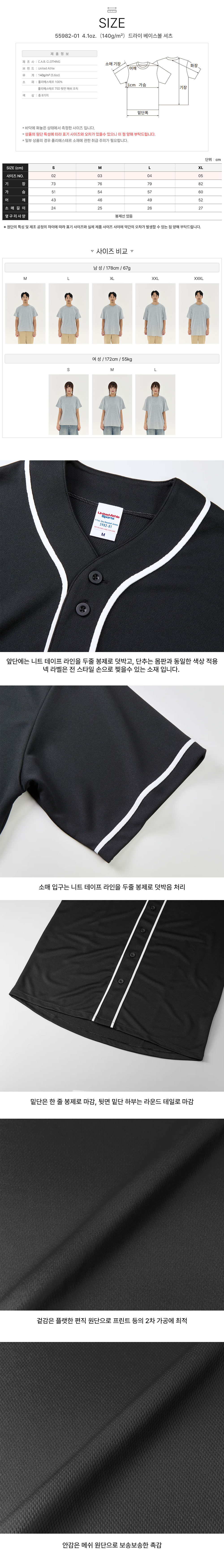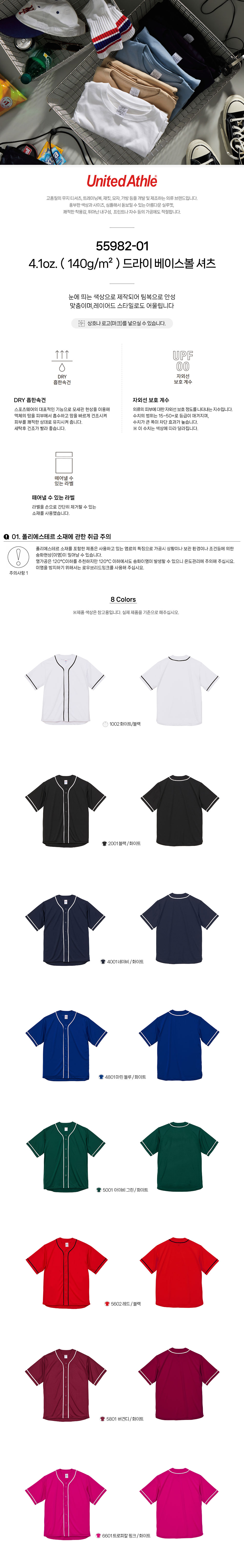 드라이 베이스볼 셔츠 55982-01 4.1oz.(140g/m²)유나이티드 애슬 United Athle