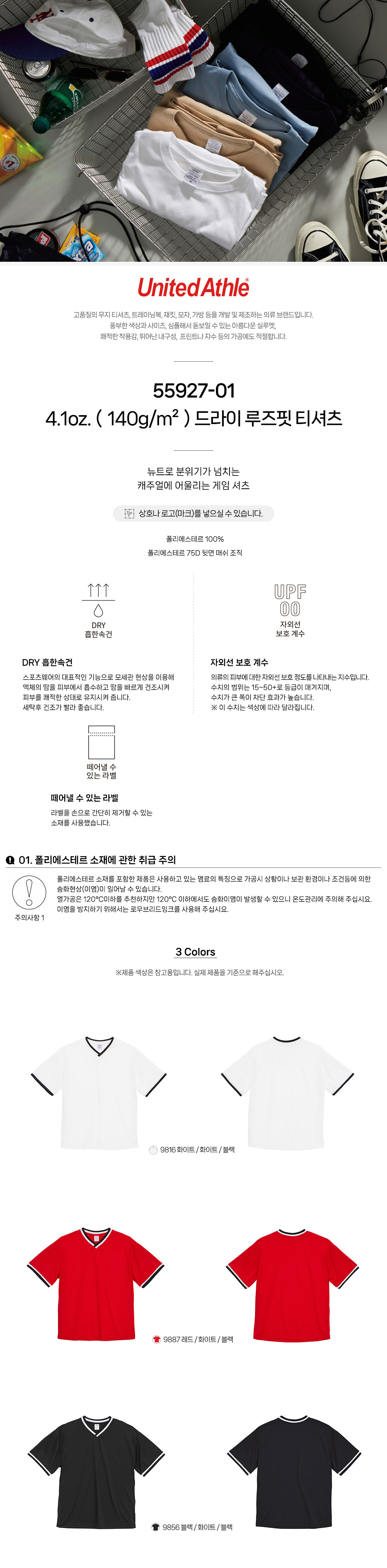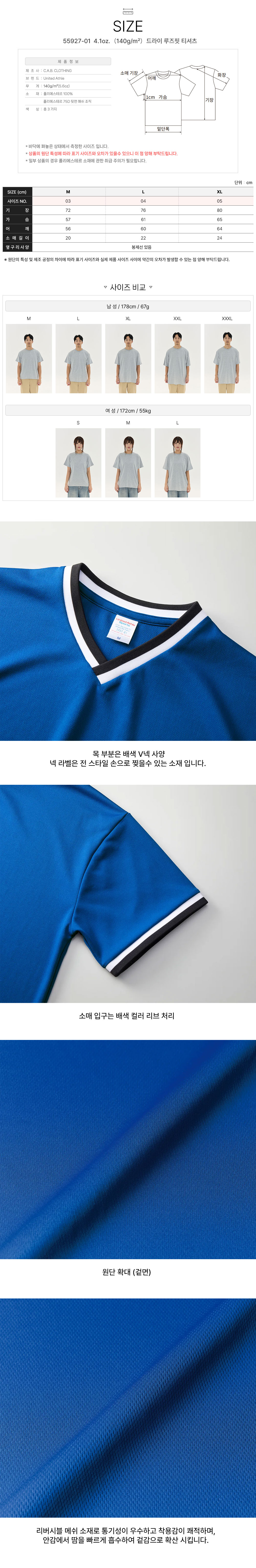 드라이 루즈핏 티셔츠 55927-01 4.1oz.(140g/m²) 유나이티드 애슬 United Athle