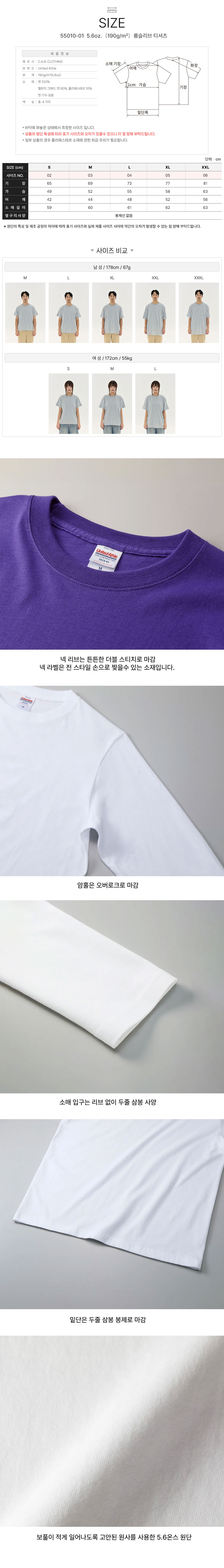 롱슬리브 티셔츠 55010-01 5.6oz.(190g/m²) 유나이티드 애슬 United Athle