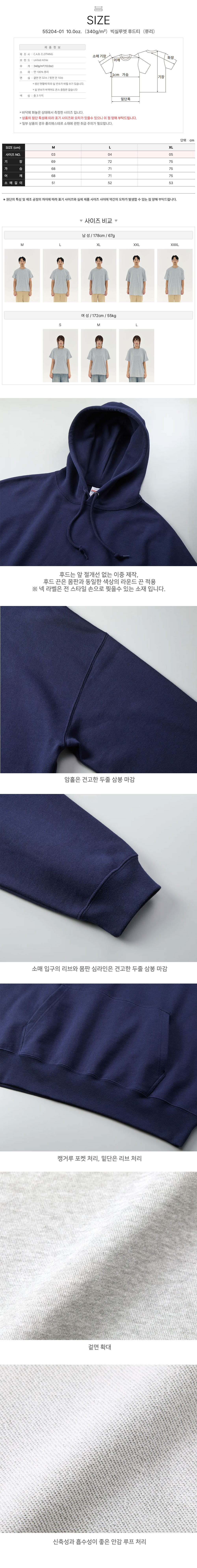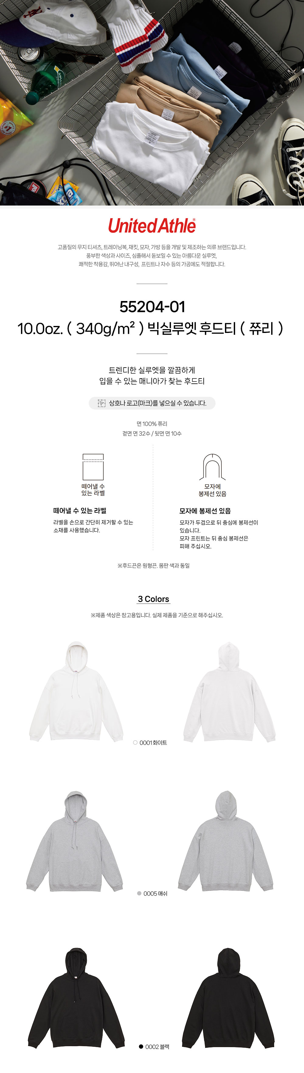 빅실루엣 후드티(쮸리)55204-01 10.0oz.(340g/m²) 유나이티드 애슬 United Athle