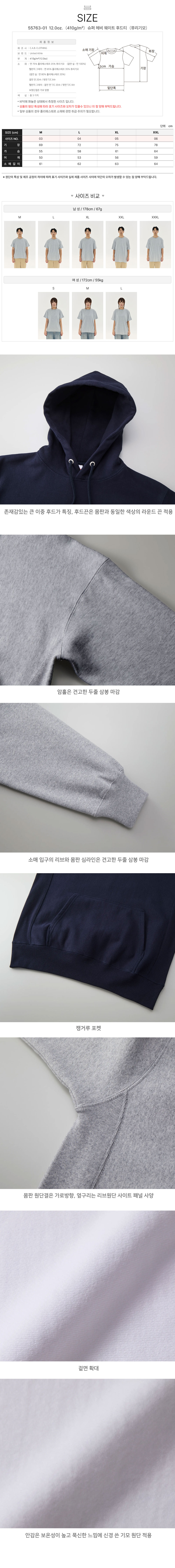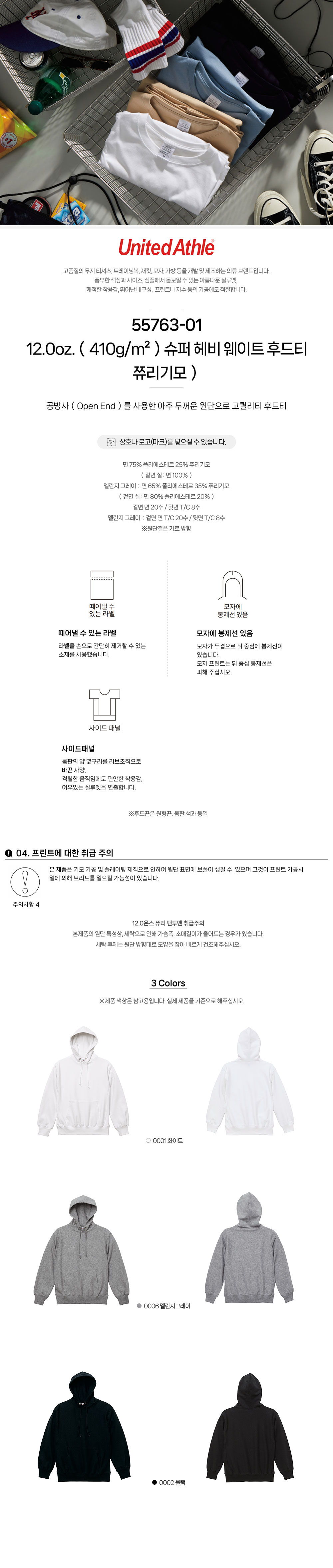 슈퍼 헤비 웨이트 후드티(쮸리기모)55763-01 12.0oz.(410g/m²) 유나이티드 애슬 United Athle