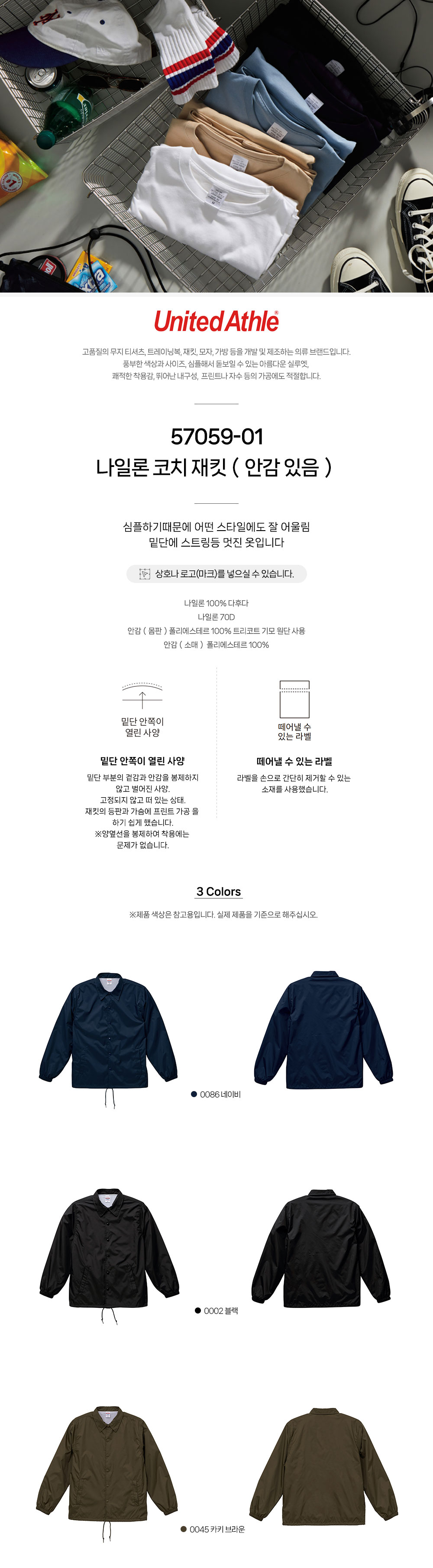 나일론 코치 재킷(안감 있음)57059-01 유나이티드 애슬 United Athle