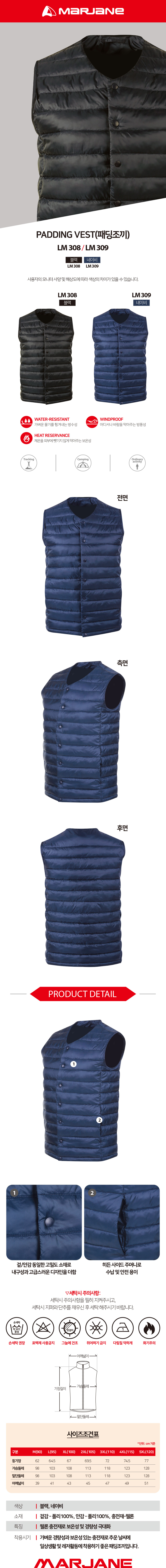 MARJANE_LM 308 / LM 309 PADDING VEST (패딩조끼) 경량패딩조끼(웰론) 2칼라