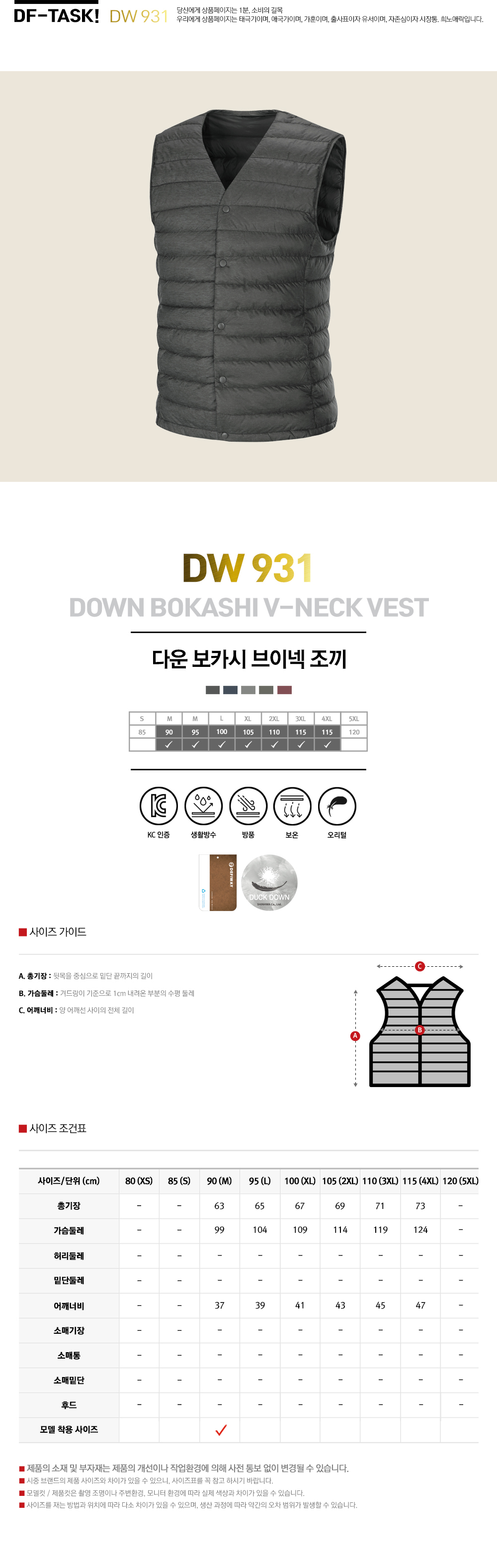 DW931 다운 보카시 V넥 경량 조끼