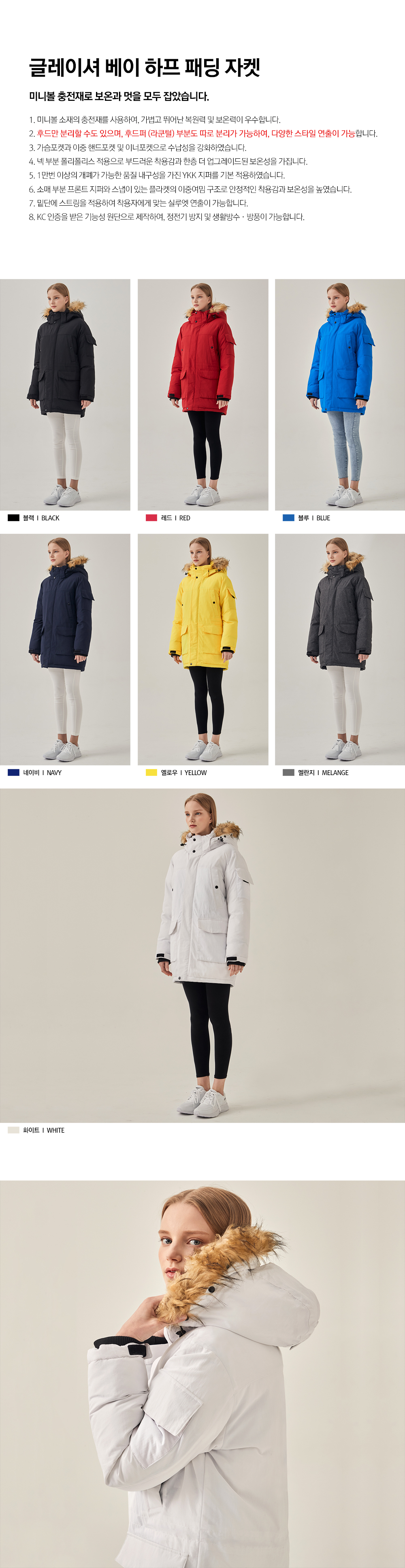 DW890 글레이셔 베이 하프 패딩 자켓 후드퍼 분리형